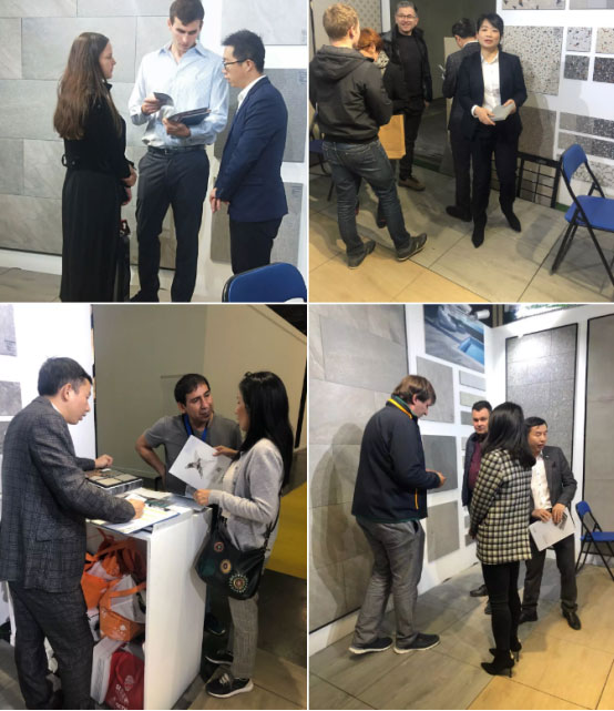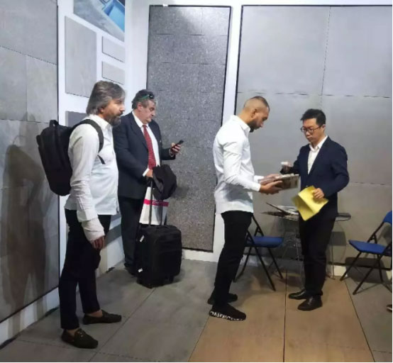 本次展會(huì )FRLS重點(diǎn)展出了2cm厚磚和水磨石、砂巖、花崗巖、水泥磚、布紋磚、木紋磚等現代仿古磚系列,吸引了來(lái)自全球各地的客商朋友的參觀(guān)和合作洽談。